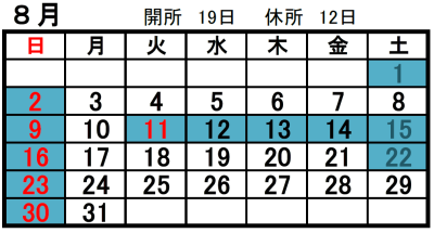 | 8月 | 防災訓練、災害講和 (1回目) 避難訓練(避難地点確認)、通報訓練 |